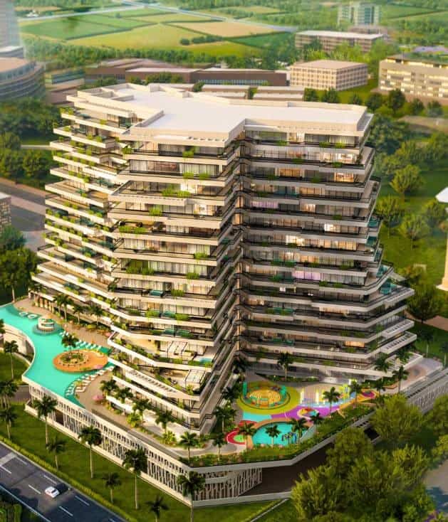 - Infinity pool, water park, fully-equipped gym, spa amenities, basketball, paddle tennis, private jacuzzi pool, outdoor cinema.