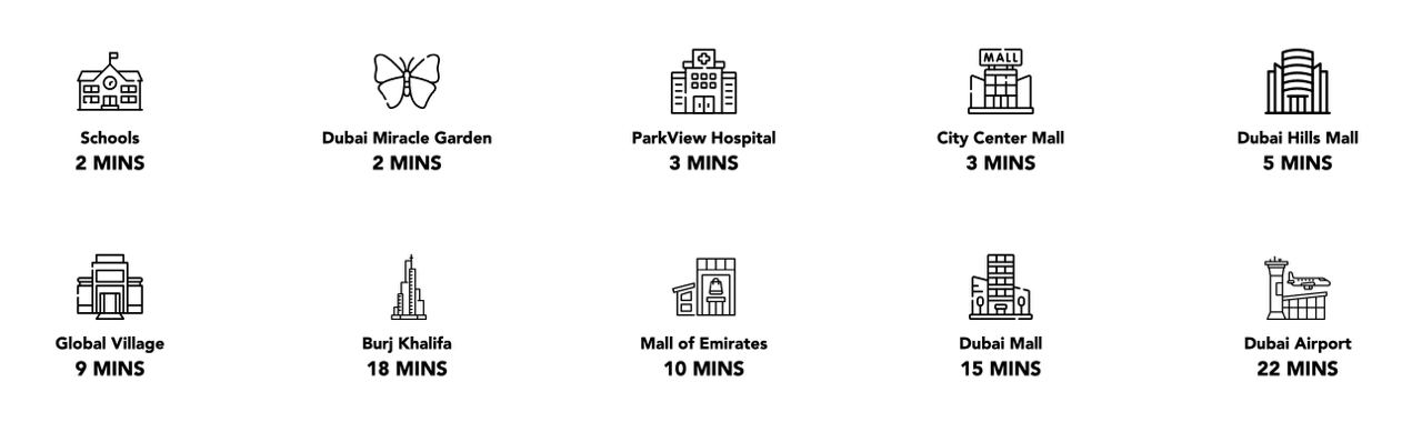 With its prime location in the heart of Arjan, Trinity lets you immerse in neighborhood living while being moments from Dubai's best attractions and amenities.